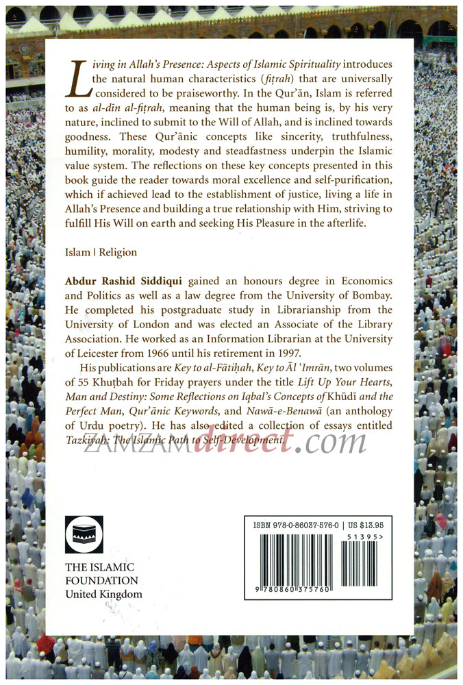 Abdur Rasheed Siddiqui gained an honour's degree in Economics and Politics from the University of Bombay and has a law degree from the same university. He completed his postgraduate study in Librarianship in London and was elected an associate of the Library Association. He worked as an Information Librarian at the University of Leicester from 1966 until his retirement in 1997. His publications are Key to al-Fatihah: Understanding the Basic Concepts, Key to Al 'Imran: Resurgence of the Ummah, two volumes of 55 Khutbah under the title Lift Up Your Hearts, Man and Destiny: Some Reflections of Iqbal's Concept of Khudi and the Perfect Man, Qur'anic Keywords and Nawa-e-Benawa (an anthology of Urdu poetry). He has also edited a collection of essays entitled Tazkiyah: The Islamic Path of Self-Development.