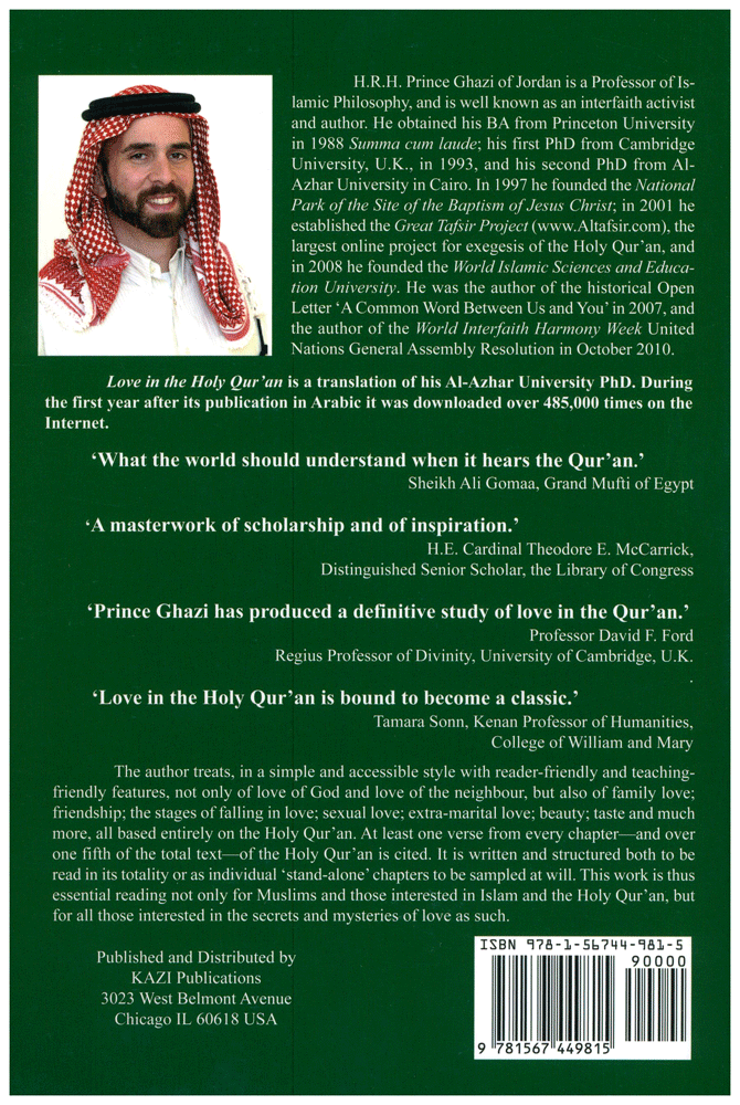 The author treats, in a simple and accessible style with reader-friendly and teaching-friendly features, not only of love of God and love of the neighbour, but also much more, all based entirely on the Holy Qur’an. At least one verse from every chapter—and over one fifth of the total text—of the Holy Qur’an is cited. It is written and structured both to be read in its totality or as individual ‘stand-alone’ chapters to be sampled at will. This work is thus essential reading not only for Muslims and those interested in Islam and the Holy Qur’an, but for all those interested in the secrets and mysteries of love.