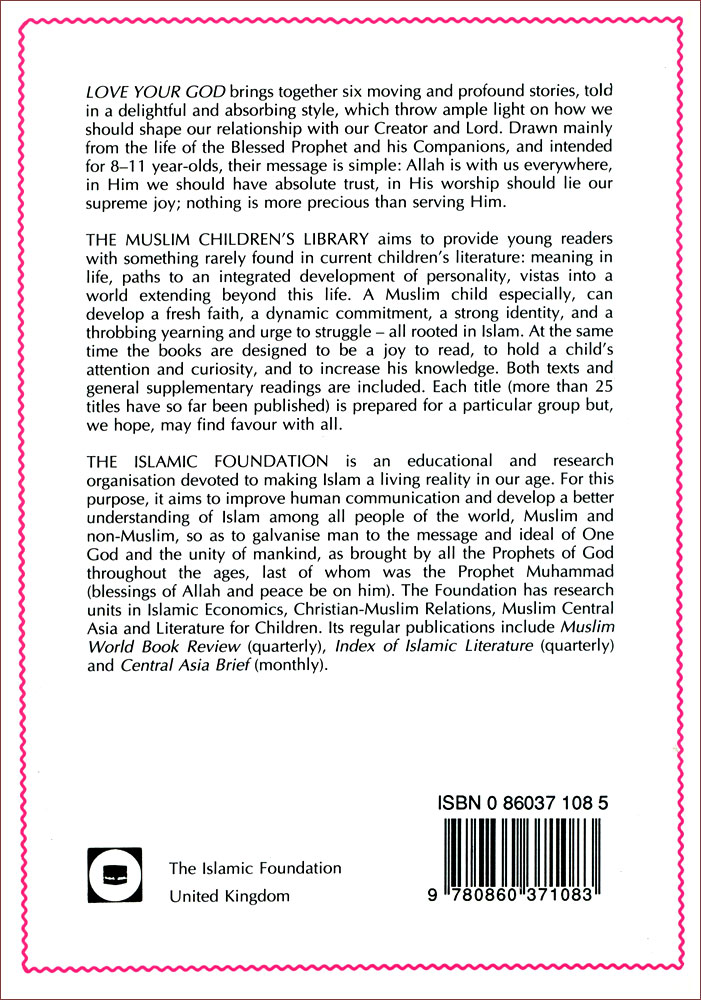 Love Your God brings together six moving stories on how we should shape our relationship with the Creator. Drawn mainly from the life of the Blessed Prophet and his companions, their message is simple: Allah is with us everywhere; we should have absolute trust in Him; nothing is more precious than serving him. With 9 full color illustrations.