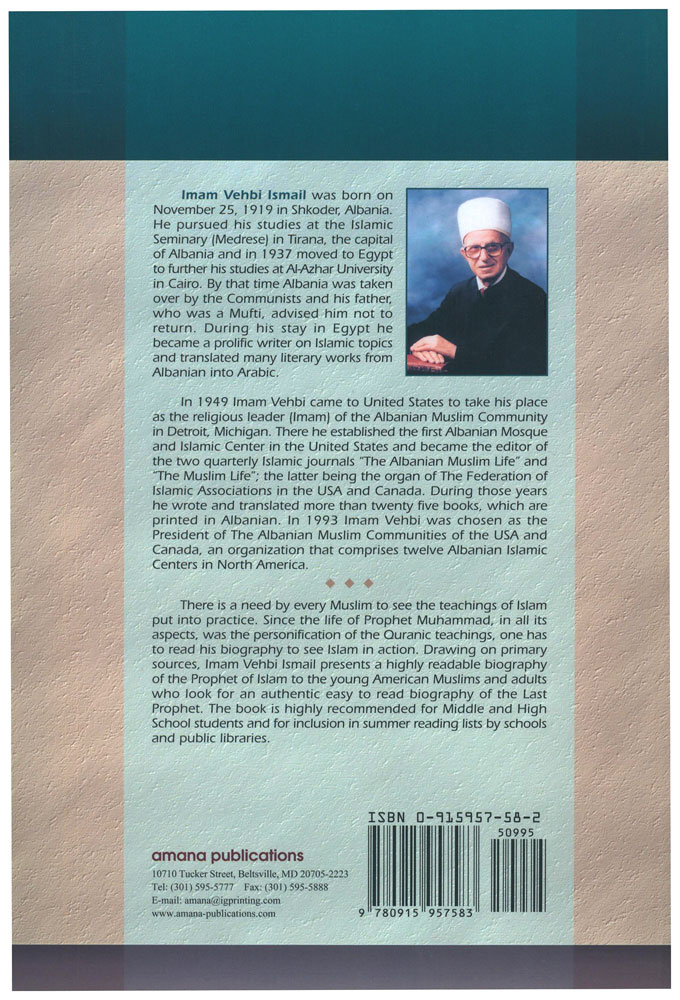 There is a need by every Muslim to see the teachings of Islam put into practice. Since the life of Prophet Muhammad, in all its aspects, was the personification of the Quranic teachings, one has to read his biography to see Islam in action. Drawing on primary sources, Imam Vehbi Ismail presents a highly readable biography ' of the Prophet of Islam to the young American Muslims and adults. Who look for an authentic easy to read biography of the Last Prophet. The book is highly recommended for Middle and High School students and for inclusion in summer reading lists by schools and public libraries.