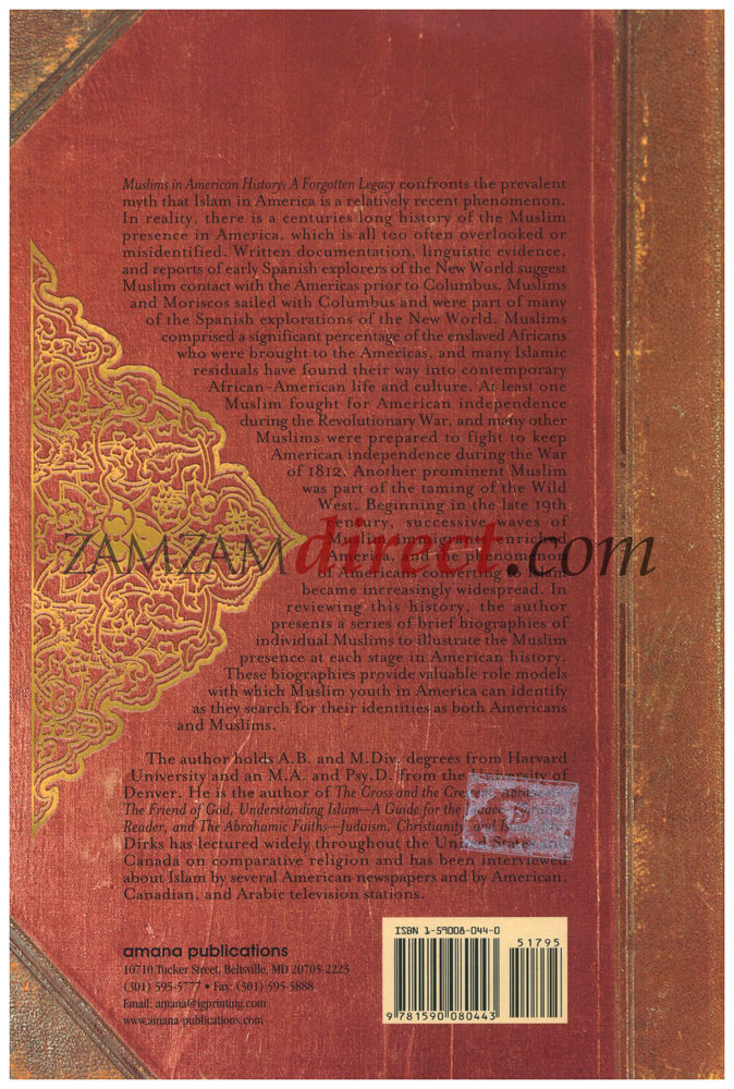 Muslims in American History: A Forgotten Legacy confronts the prevalent myth that Islam in America is a relatively recent phenomenon. In reality, there is a centuries long history of the Muslim presence in America, which is all too often overlooked or misidentified. Written documentation, linguistic evidence, and reports of early Spanish explorers of the New World suggest Muslim contact with the Americas prior to Columbus. Muslims and Moriscos sailed with Columbus and were part of many of the Spanish explorations of the New World.
