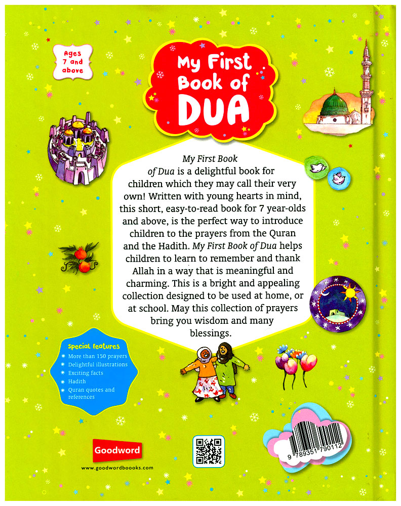 My First Book of Dua is a delightful book for children which they may call their very own! Written with young hearts in mind, this short, easy to read book for 7 year olds and above, is the perfect way to introduce children to the prayers from the Quran and the Hadith. My First Book of Dua helps children to learn to remember and thank Allah in a way that is meaningful and charming. This is a bright and appealing collection designed to be used at home, or at school. May this collection of prayers bring you wisdom and many blessings.