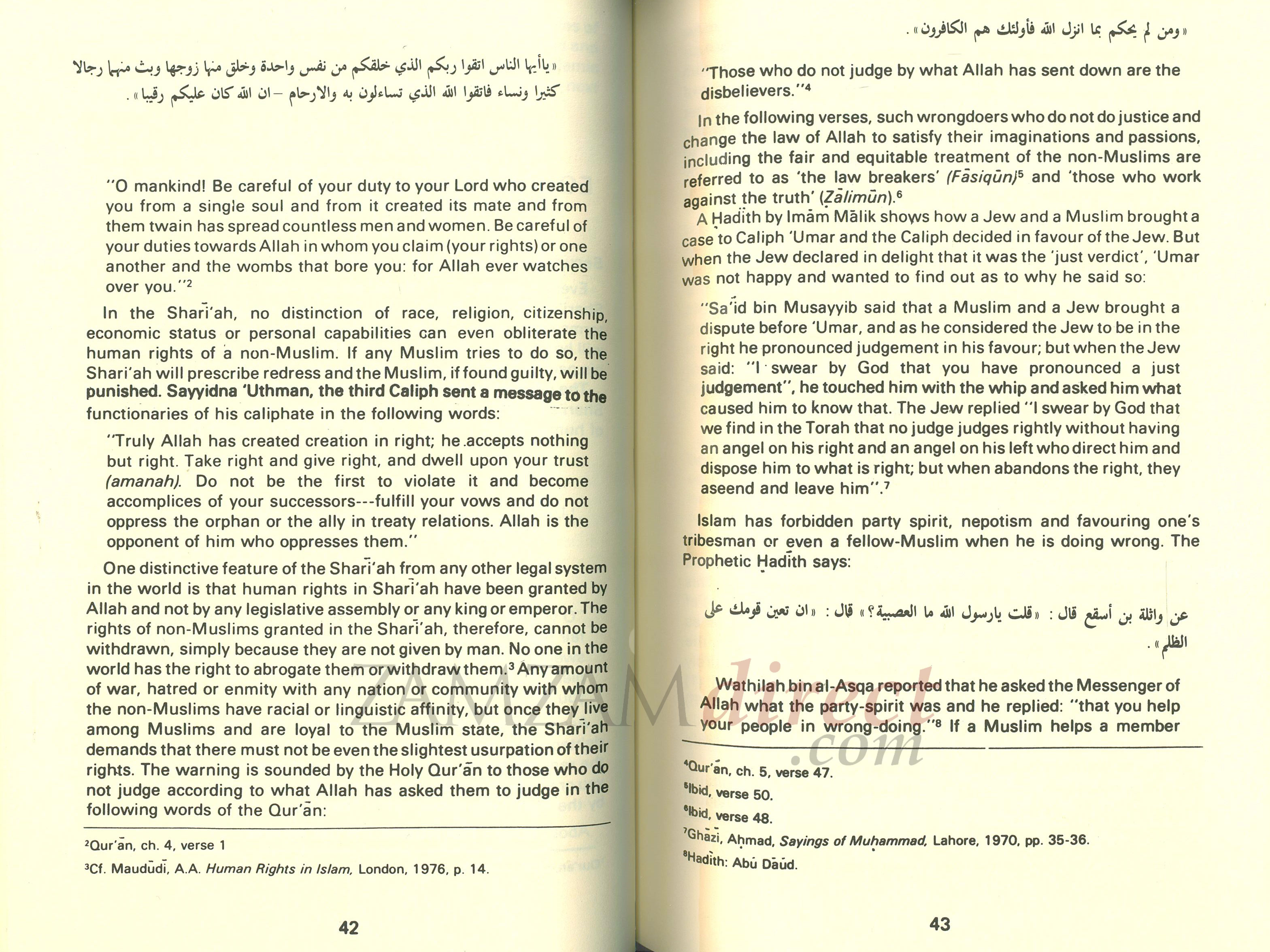 There is so much guidance in respect of each one of the above classifications in Islamic scriptures that they would form a subject of voluminous books. But for the purpose of this book, we shall dwell upon numbers three and four to discuss the rights of non-Muslims under Shariah, the subject which has generated so much doubts and misgivings in the minds of Muslims and non-Muslims alike.