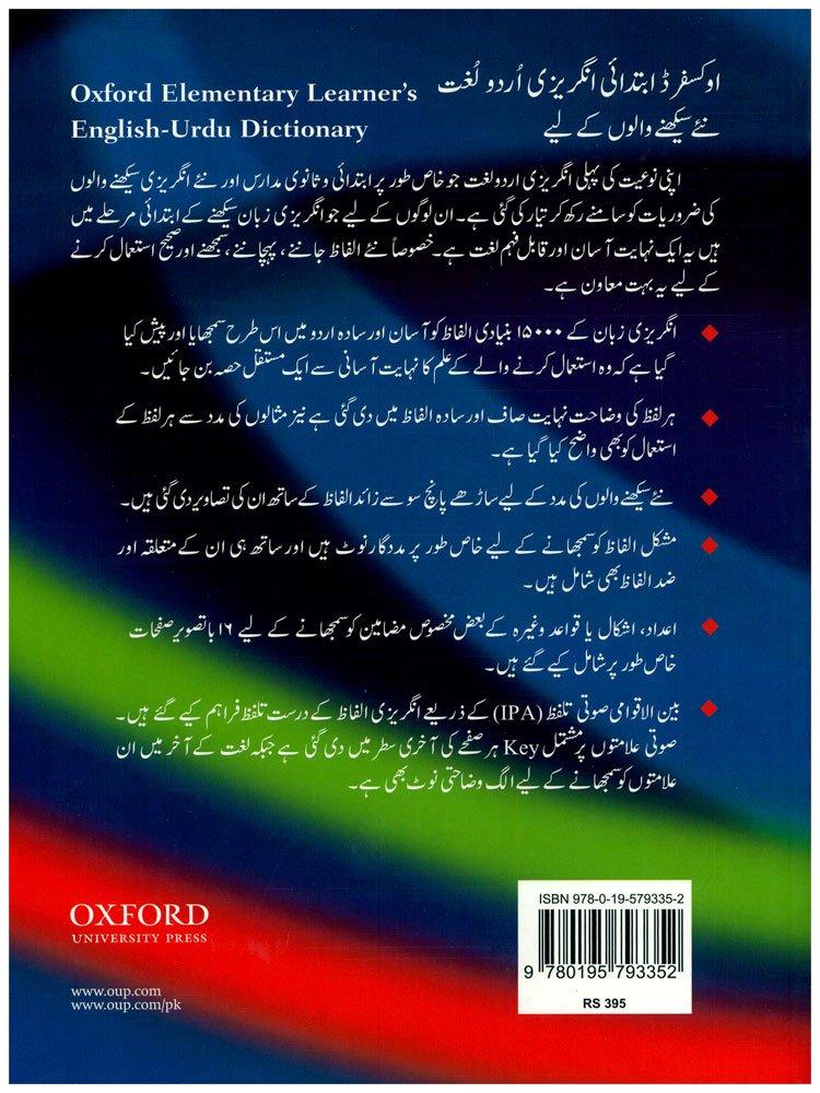 Publisher: Oxford University Press - OUP Size/Vol.: A5_EXTRA (17.3x23.5 cm - 6.81x9.25 in) ISBN : 9780195793352 Language : English-Urdu -Binding: Paperback -