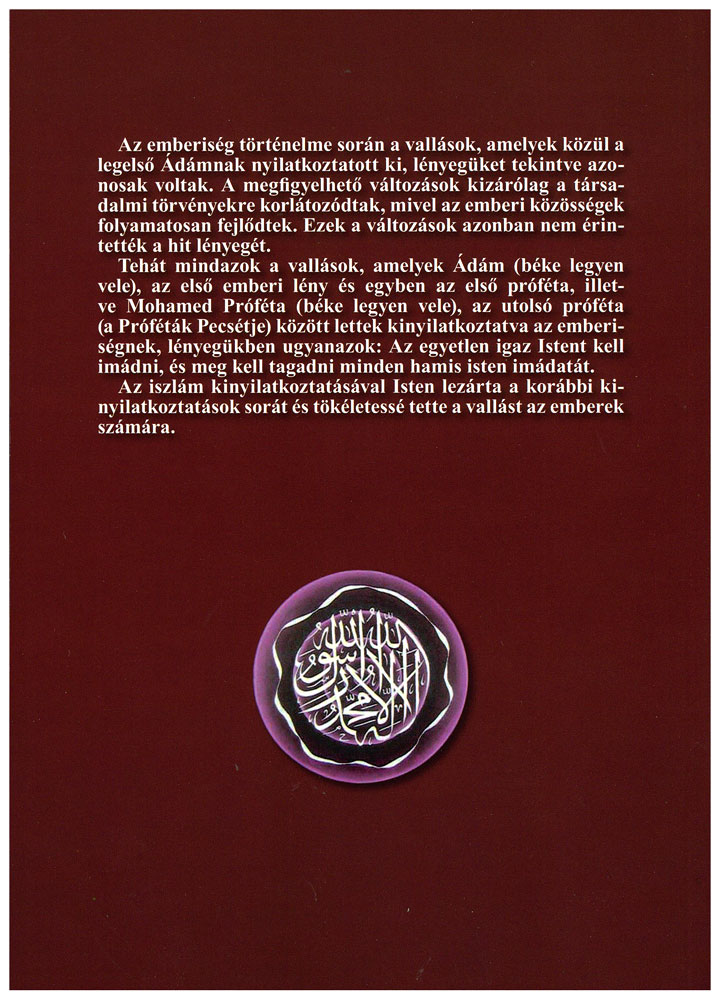 Publisher: Magyarorszagi Muszlimok Egyhaza Size/Vol.: A5 (14.8x21 cm - 5.83x8.27 in) ISBN : 9789638746917 Language : Hungarian -Binding: Paperback -