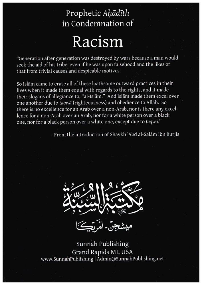 So Islam came to erase all of these loathsome outward practices in their lives when it made them equal with regards to the rights, and it made their slogans of allegiance to, “al-Islam.” And Islam made them excel over one another due to taqwa; (righteousness) and obedience to Allah. So there is no excellence for an Arab over a non-Arab, nor is there any excellence for a non-Arab over an Arab, nor for a white person over a black one, nor for a black person over a white one, except due to taqwa.”