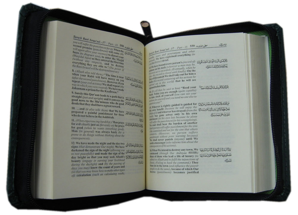 Contains the Arabic text. Handy size in Zipped case.