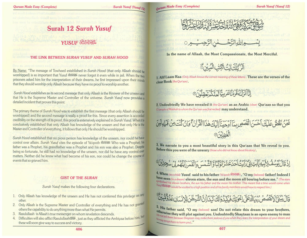 Each Surah begins with the summary of the Surah, including topics contained within it and link with previous Surah.