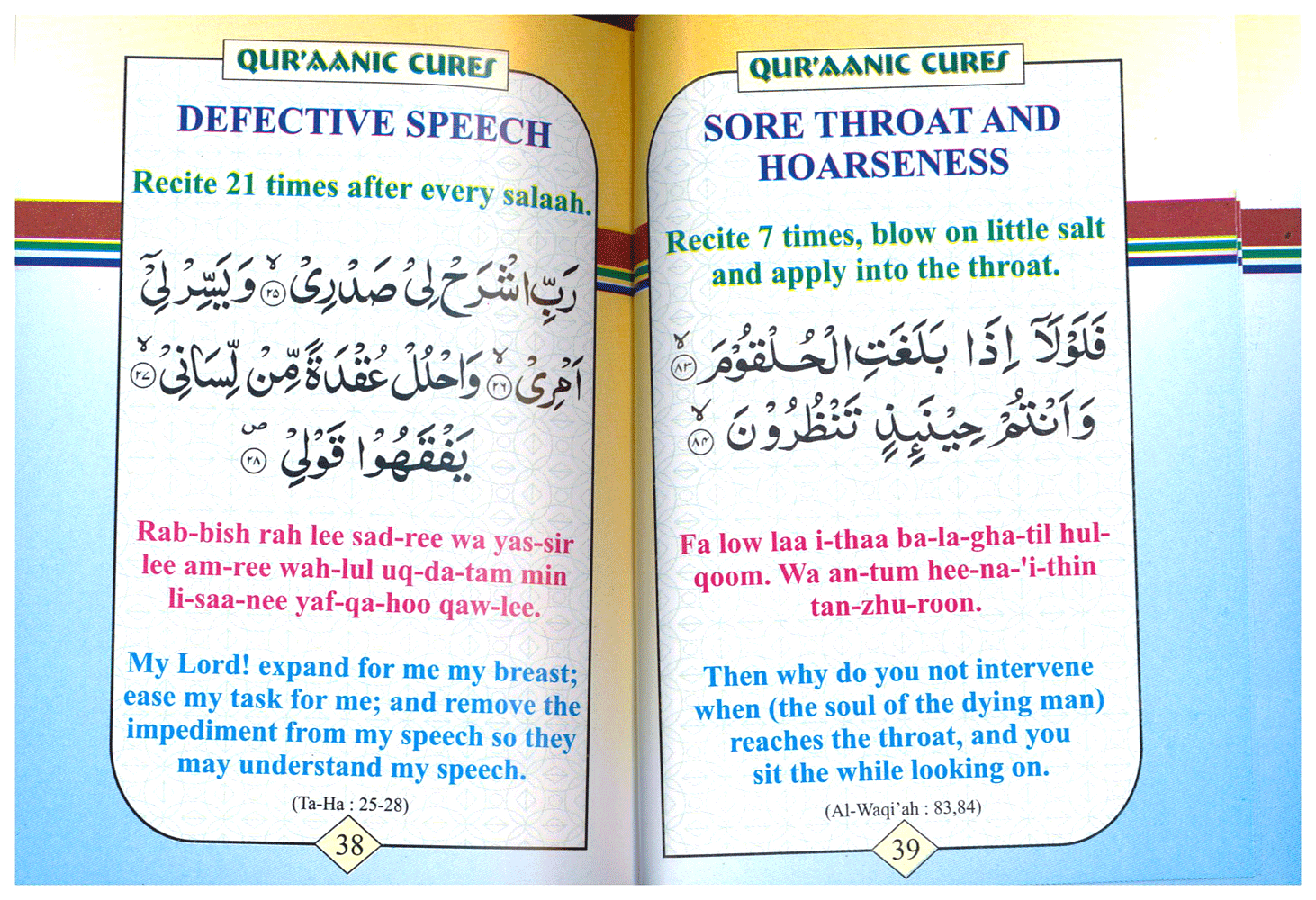 Qur'aanic Cures - Arabic Text, English Transliteration & English Translation |