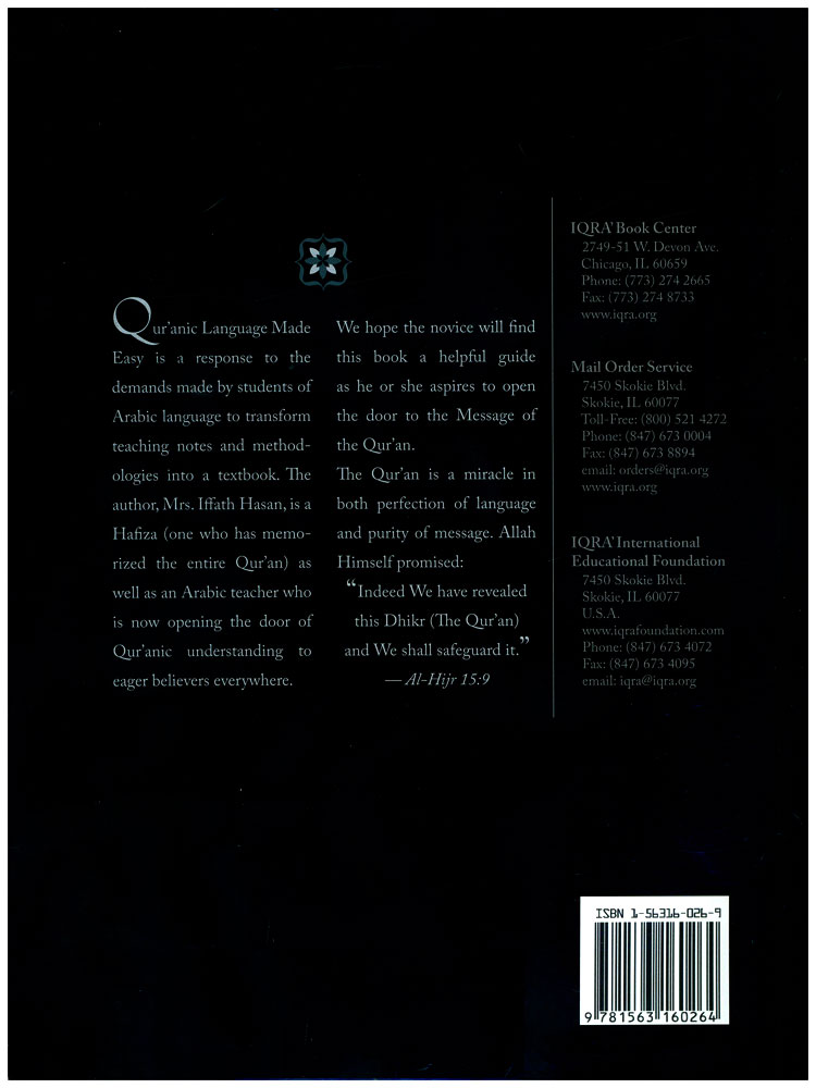 Author: Hafiza Hasan Publisher: IQRA' International Educational Foundation Size/Vol.: A4 (21x29.7 cm - 8.27x11.69 in) ISBN : 1563160269 Language : Arabic, English -Binding: Paperback -