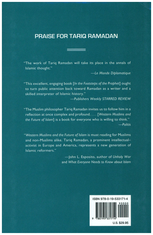 Author: Tariq Ramadan Publisher: Oxford University Press - OUP Size/Vol.: A5_EXTRA (17.3x23.5 cm - 6.81x9.25 in) ISBN : 9780195331714 Language : English -Binding: Hardback -