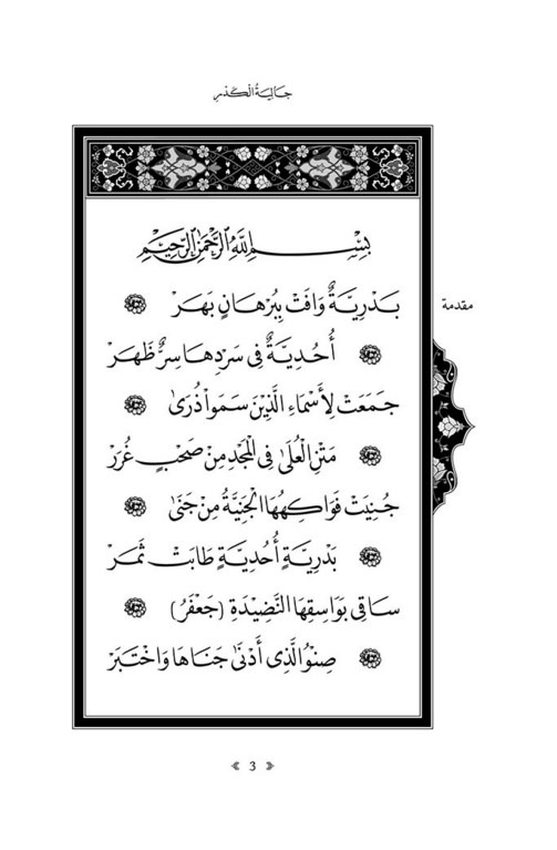 This edition features the complete Arabic text edited by the late Sayyid Muhammad B. ‘Alawi al-Maliki that has been rendered in beautiful digital calligraphy. The facing English translation is by Shaykh Abdul Aziz Ahmed Fredericks of Glasgow (UK). The translation was redacted by Shaykh Amjad Mahmood of Birmingham (UK) using the commentary by Shaykh ‘Abdul Hadi Naja al-Abyari (d. 1888) entitled: “al-‘Ara’is al-Wadiha al-Gharar fi Sharh al-Manzuma al-Badriyya”.