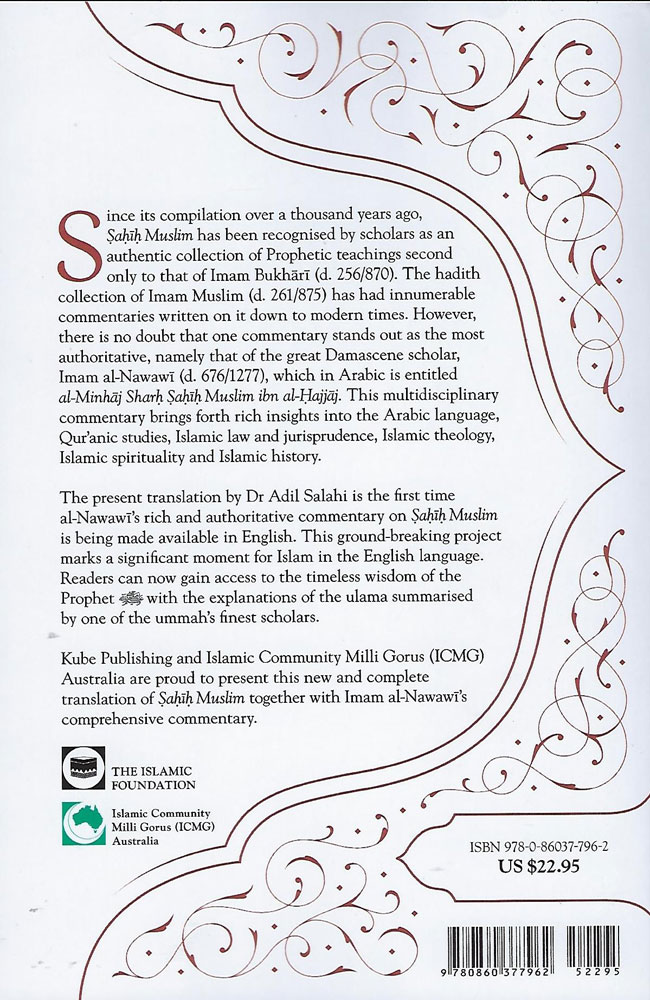 With a commentary by Imam Nawawi, whose other works are amongst the most widely-read books on Islam, and translated by Adil Salahi, a modern scholar of great acclaim, this immense work, finally available to English readers, is an essential addition to every Muslim library, and for anybody with an interest in Islamic thought.