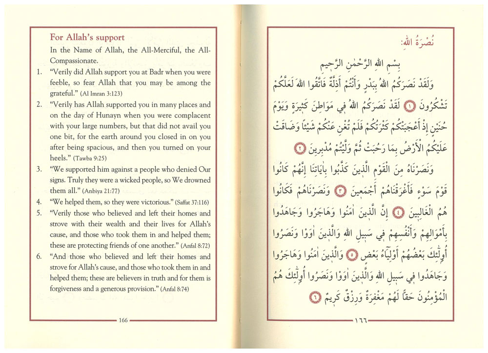 This book consists of Islamic prayers Prophet Muhammad, peace and blessings be upon him, and some Muslim saints adopted for various occasions: morning and evening prayers, purification, eating, drinking, pilgrimage and everyday life situations. Additional sections include the Most Beautiful Names of Allah, prayer for help and success, and other prayers to be recited any time.