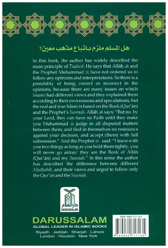 Author: Sheikh Muhammad Sultan Al-Ma'soomi Al- Khajnadee Publisher: Darussalam Publishers & Distributors Size/Vol.: A5 (14.8x21 cm - 5.83x8.27 in) ISBN : 9960717135 Language : English -Binding: Paperback -
