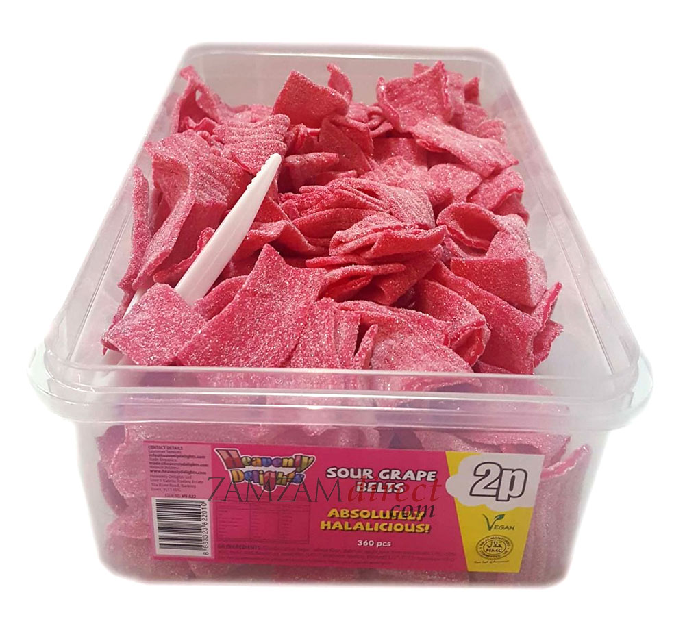 Brand: Heavenly Delights -Sour Grape Belts, Tub of 360 pcs, 2p Range -