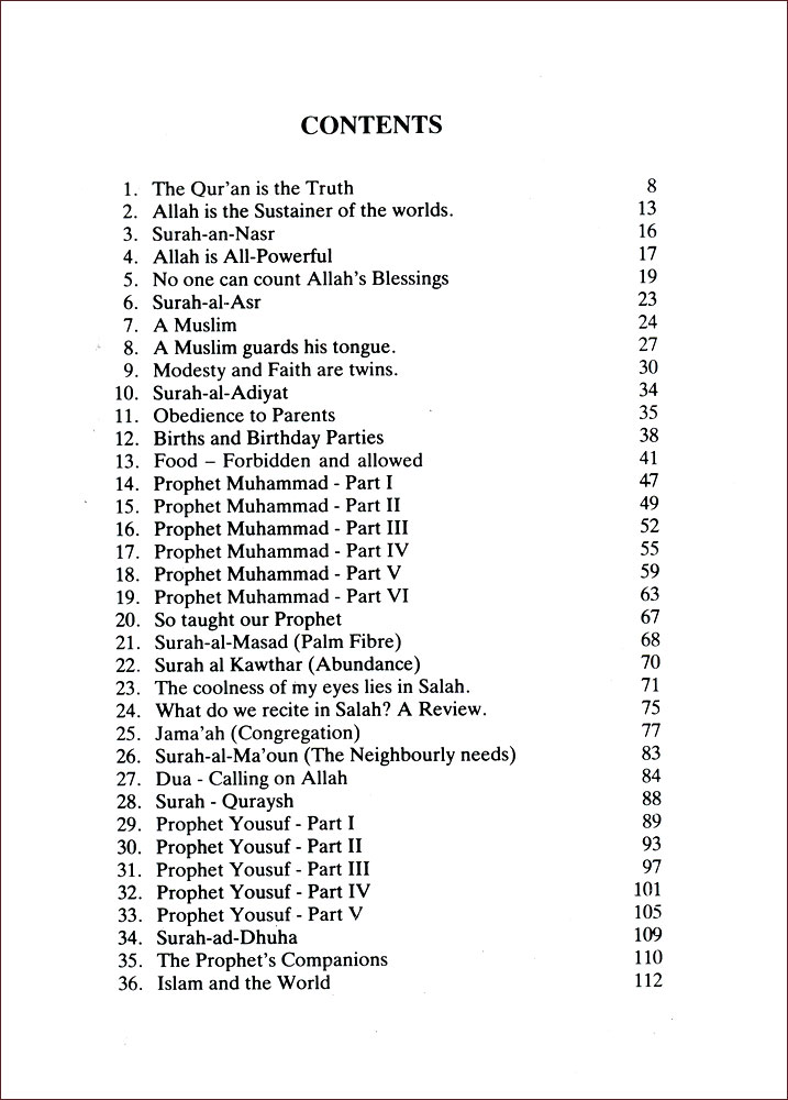 The series of books prepared by Mr. Abdul Aziz for Grades One to six , has in it units that acquaint the children with Islamic belief , the pillars of Islam , its basic teachings , the life of seal of the Prophet , may the blessings and peace of Allah be upon him, and a few Surahs from the Holy Quran. These lessons are essential to the Muslim children and this is why this series of books is useful and bears importance .Every part of it contains correct Islamic beliefs , it discusses the Life of the prophet and explains its great importance. Since the author possesses a correct ‘Aqeedah” and has knowledge of education and psychology, this series stands out unique in its nature.