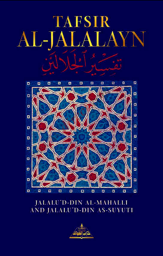 Explained by: Jalalu’d-din muhammad ibn ahmad al-mahalli (791-864/1389-1459) of Cairo was a versatile, scholar who excelled in jurisprudence, theology, grammar, rhetoric, and Qur’anic commentary. He was known for his scrupulousness, fear of Allah, and fearlessness in upholding the truth. Al-Mahalli was offered the highest judicial positions but refused them. He taugh jurisprudence in the Mu’ayyadiyya and Barquqiyya madrasas. Abstinent and ascetic, he lived on what he earned by trade. His most famous work is his Qur’anic commentary, Tafsir al-Jalalayn, which he began halfway through the text with Surat al-Kahf, ending with an-Nas and al-Fatiha.. Although he died before he could start the other half, the work was completed by his student, Jalalu’d-Din as-Suyuti. Al-Mahalli’s other books include commentaries on Jam’ al-Jawami’, al-Burda, al-Manahij fi’l-fiqh, al-Waraqat fi’l-usul, Kitab al Jihad. -