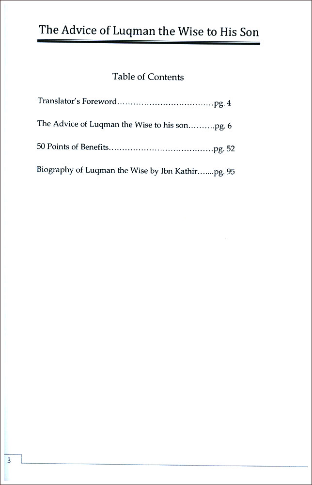 The Advice of Luqman : The Wise. To his Son |