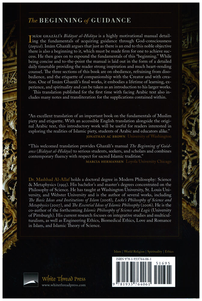 Author: Abu Hamid Al-Ghazali Translator: Mashhad Al-Allaf Publisher: White Thread Press Size/Vol.: none ISBN : 9781933764061 Language : English, Arabic -Binding: Paperback -