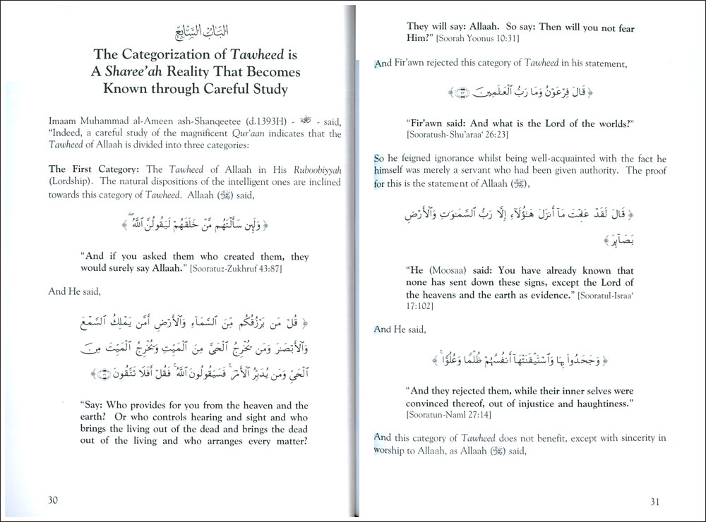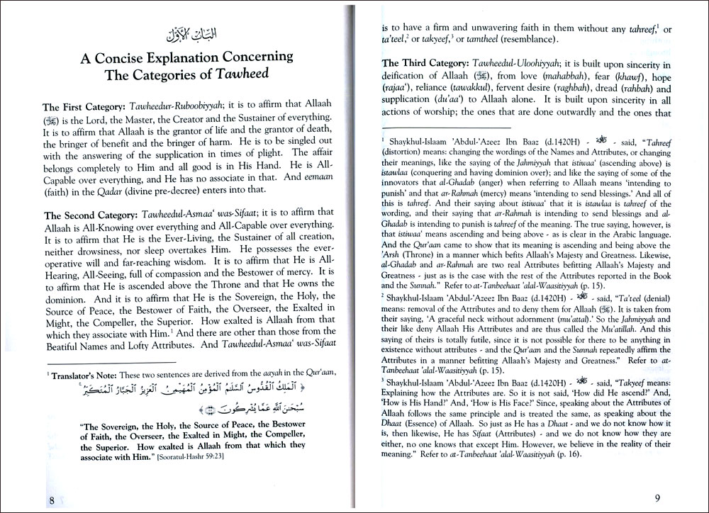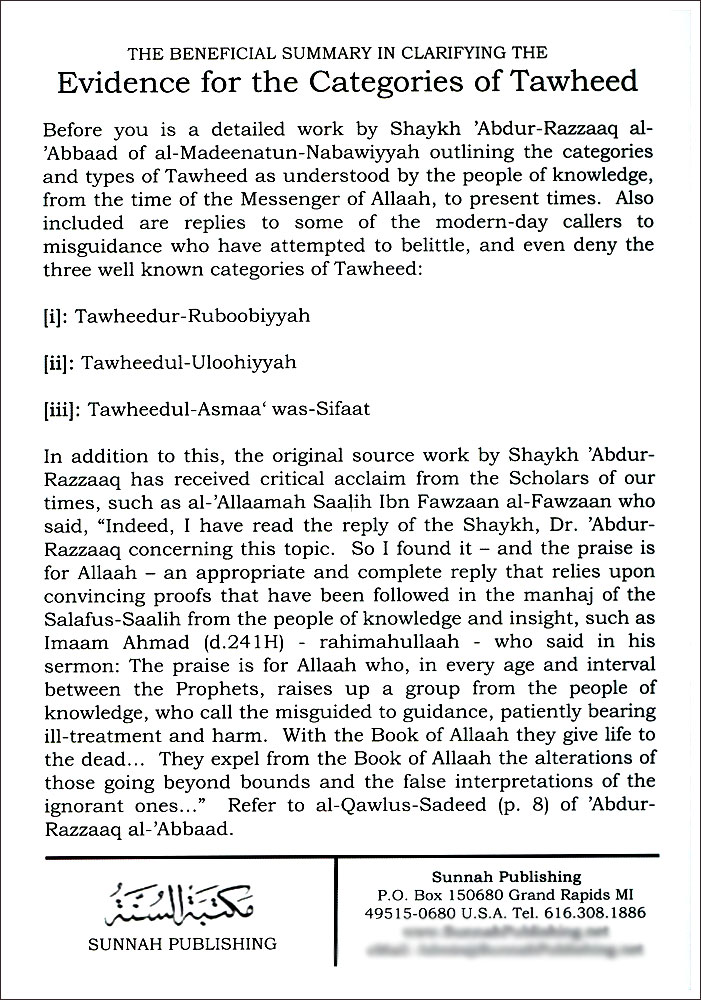 The Beneficial Summary In Clarifiying The Evidences for the Categories of Taeheed |