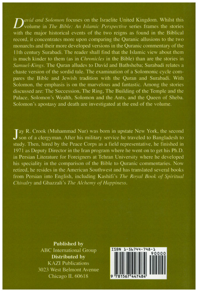 This work focuses on the Israelite United Kingdom. Whilst this volume in the series frames the stories with the major historical events of the two reigns as found in the Biblical record, it concentrates more upon comparing the Quranic allusions to the two monarchs and their more developed versions in the Quranic commentary of the 11th century Surabadi. The reader shall find that the Islamic view about them is much kinder to them (as is Chronicles in the Bible) than are the stories in Samuel-Kings. The Quran alludes to David and Bathsheba. Surabadi relates a chaste version of the sordid tale. The examination of a Solomonic cycle compares the Bible and Jewish tradition with the Quran and Surabadi. With Solomon, the emphasis is on the marvelous and fantastic. Among the stories discussed are: The Succession, The Ring, The Building of the Temple and the Palace, Solomon's Wealth, Solomon and the Ants, and the Queen of Sheba. Solomon's apostasy and death are investigated at the end of the volume.