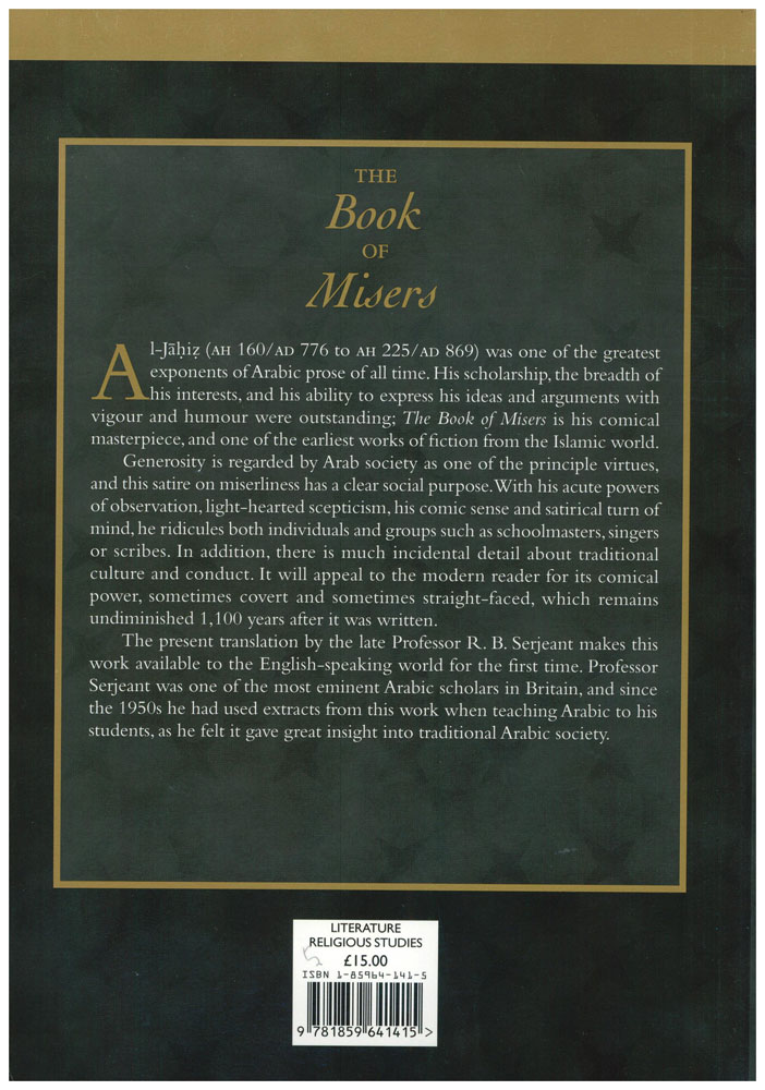 Author: Al-Jahiz Translator: R. B. Serjeant Publisher: Garnet Publishing Ltd. Size/Vol.: A5_EXTRA (17.3x23.5 cm - 6.81x9.25 in) ISBN : 1859641415 Language : English -Binding: Paperback -