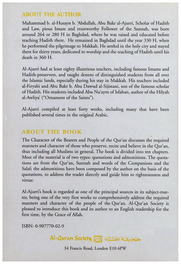 Author: Imam Abu Bakr Muhammad b. al-Hussyn al-Ajurri