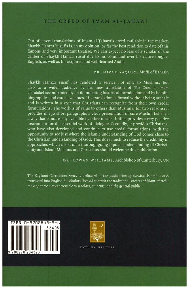 Hamza Yusuf's Creed of Imam al-Tahawi is an important contribution to scholarship and to Muslim self-understanding. This fluid and accurate translation provides access and insight into a major scholastic work that sets out core Islamic beliefs/doctrines. It will be welcomed by Muslim and non-Muslim readers alike.
