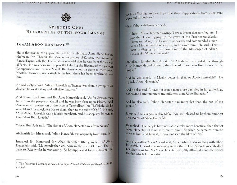 The Creed of the Four Imaams Imaam Aboo Haneefah, Imaam Maalik, Imaam ash-Shafi\'ee, Imaam Ahmad |