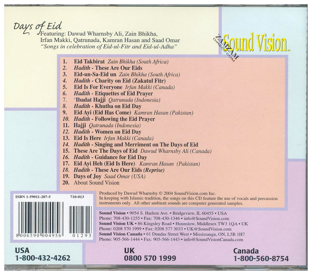 Artist: Dawud Wharnsby Ali, Zain Bhikha, Irfan Makki, Qatrunada, Kamran Hasan, Saad Omar Producer: Sound Vision ISBN : 1590112075 Language : English, Urdu, South Africa, Indonesia