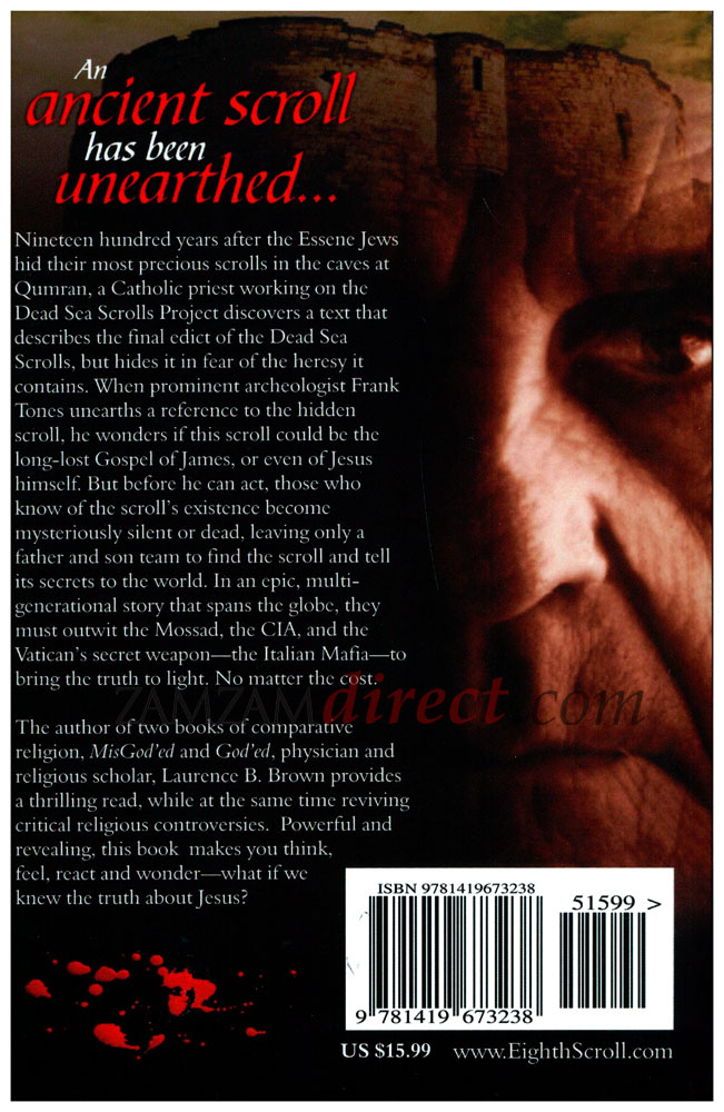 Stirring the flames of age-old controversies, The Eighth Scroll by Laurence B. Brown draws on the three Abrahamic faiths of Judaism, Christianity, and Islam to create an unbelievably dynamic and powerful story. Set in a world that teeters between orthodoxy and heresy, this thriller is packed with intrigue and adventure. When a Roman Catholic scholar involved in the Dead Sea Scrolls Project hides one of the scrolls because of the heretical message it contains, no one is the wiser until decades later, when a prominent archeologist discovers reference to the scroll in an archeological dig. This discovery spurs the world religions into a dangerous game of cat and mouse, in which all who seek the hidden scroll are mysteriously silenced, leaving the salvation of humankind to a father and son, who must either find the hidden scroll . . . or die trying.