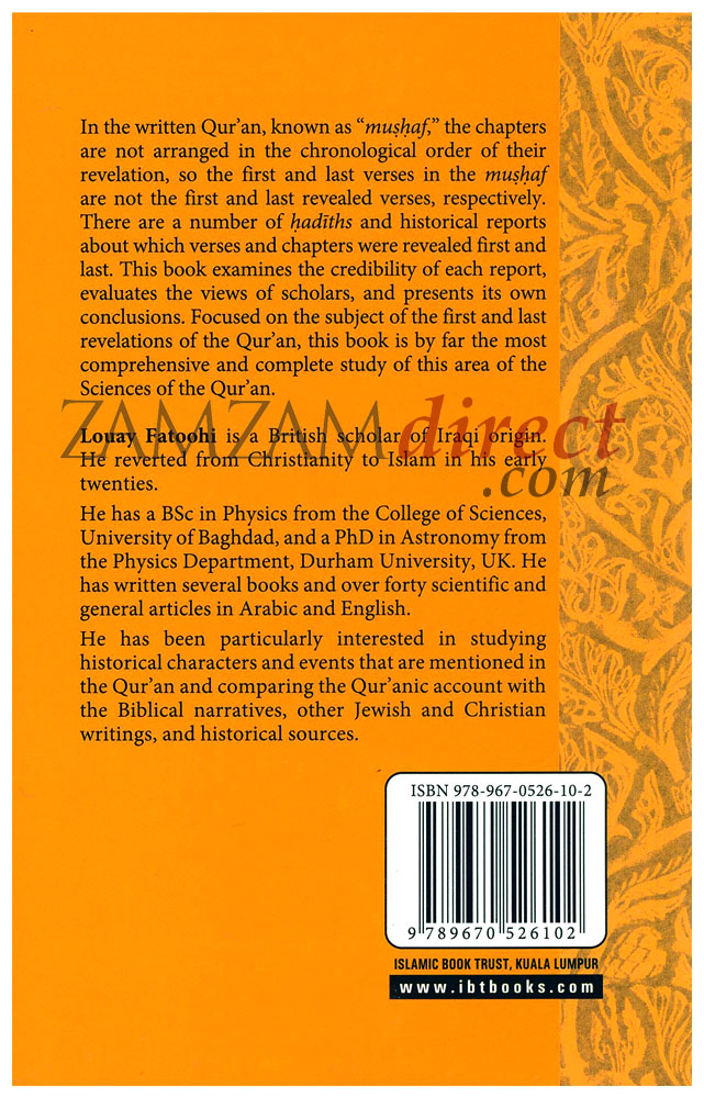In the written Qur’an, known as “muṣḥaf,” the chapters are not arranged in the chronological order of their revelation, so the first and last verses in the muṣḥaf are not the first and last revealed verses, respectively. There are a number of ḥadīths and historical reports about which verses and chapters were revealed first and last. This book examines the credibility of each report, evaluates the views of scholars, and presents its own conclusions. Focused on the subject of the first and last revelations of the Qur’an, this book is by far the most comprehensive and complete study of this area of the Sciences of the Qur’an.