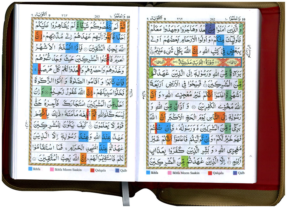 The Holy Qur'an : Colour Coded Tajweed Rules - In Golden Zip Case