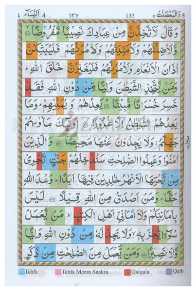 Seven different colour shades have been used and each colour represents a Tajweed Rule.
