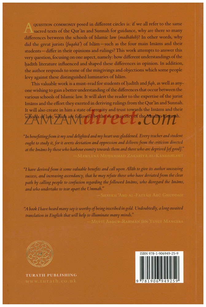 A question commonly posed in different circles is: if we all refer to the same sacred texts of the Quran and Sunnah for guidance, why are there so many differences between the schools of Islamic law (madhahib)? In other words, why did the great jurists (fuqaha) of Islam such as the four main Imams and their students differ in their opinions and rulings? This work attempts to answer this very question, focusing on one aspect, namely: how different understandings of the hadith literature influenced and shaped these differences in opinion. In addition, the author responds to some of the misgivings and objections which some people levy against these distinguished luminaries of Islam.