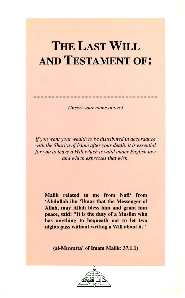 The Islamic Will - A Practical Guiede To Being Prepared For Death And Writing Your Will According To The Shari'a Of Islam And Engkish Law