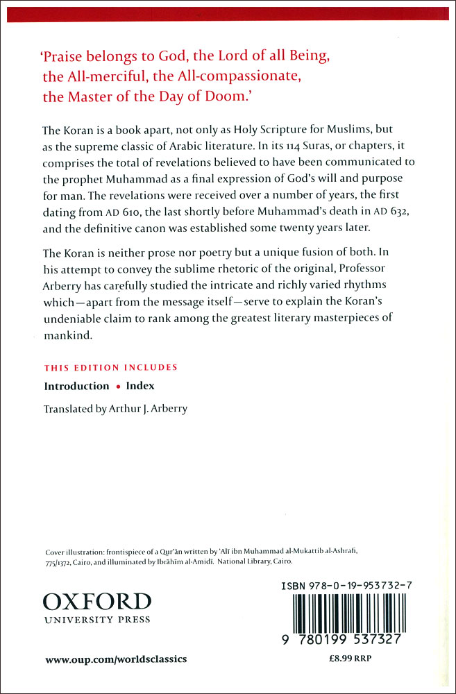 Translator: Arthur J. Arberry Publisher: Princeton University Press Size/Vol.: A5 (14.8x21 cm - 5.83x8.27 in) ISBN : 9780199537327 Language : English -Binding: Paperback -