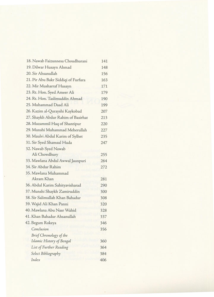 A popular history book that covers 800 years of the history of Islam in Bengal through the example of 42 inspirational figures up until the 20th century by the author of the bestseller "The Muslim 100".