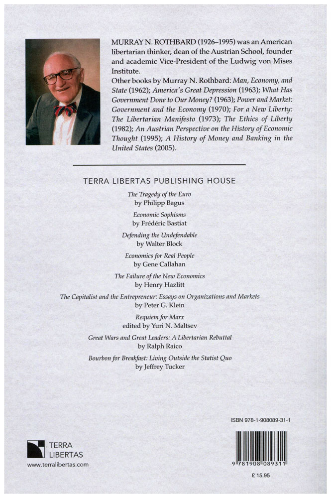 Author: Murray N.Rothbard Publisher: Terra Libertas Size/Vol.: A5_EXTRA (17.3x23.5 cm - 6.81x9.25 in) ISBN : 9781908089311 Language : English -Binding: Paperback -