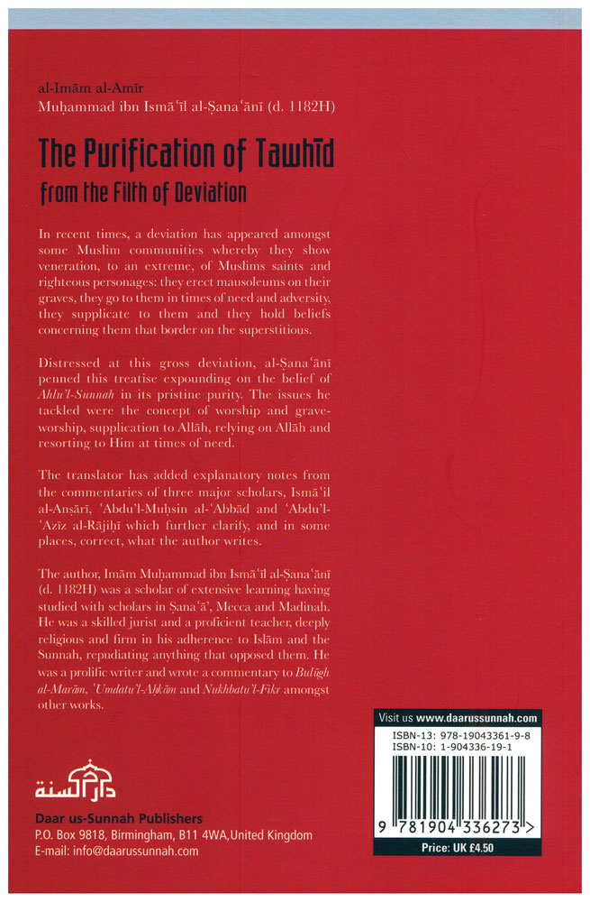 Distressed at this gross deviation, al-Sana’ani penned this treatise expounding on the belief of Ahlul-Sunnah in its pristine purity. The issues he tackled were the concept of worship and grave-worship, supplication to Allah, relying on Allah and resorting to Him at times of need.