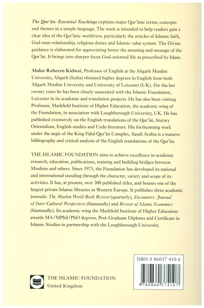 Author: Abdur Raheem Kidwai Publisher: The Islamic Foundation Size/Vol.: A5_EXTRA (17.3x23.5 cm - 6.81x9.25 in) ISBN : 0860374106 Language : English -Binding: Paperback -
