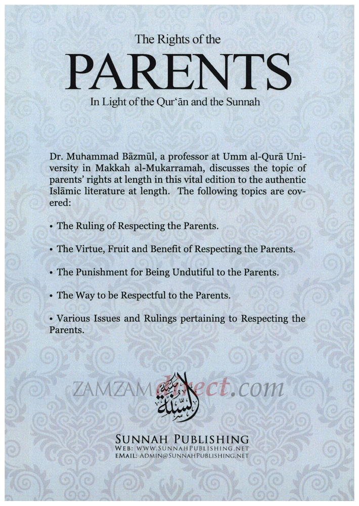 Dr. Muhammad Bazmul, a professor at Umm al-Qura University in Makkah al-Mukarramah, discusses the topic of parents' rights at length in this vital edition to the authentic Islamic literature. The following topics are covered: