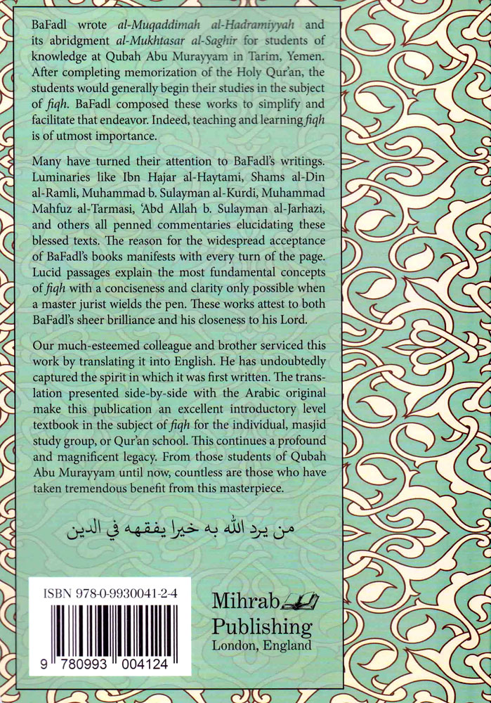 BaFadl wrote al Muqaddimah al-Hadramiyyah and its abridgment al-Mukhtasar al Saghir for students of knowledge at Qubah Abu Murayyam in Tarim, Yemen. After completing memorization of the Holy Quran, the students would generally begin their studies in the subject of fiqh. BaFadl composed these works to simplify and facilitate that endeavor. Indeed, teaching and learning fiqh is of utmost importance.