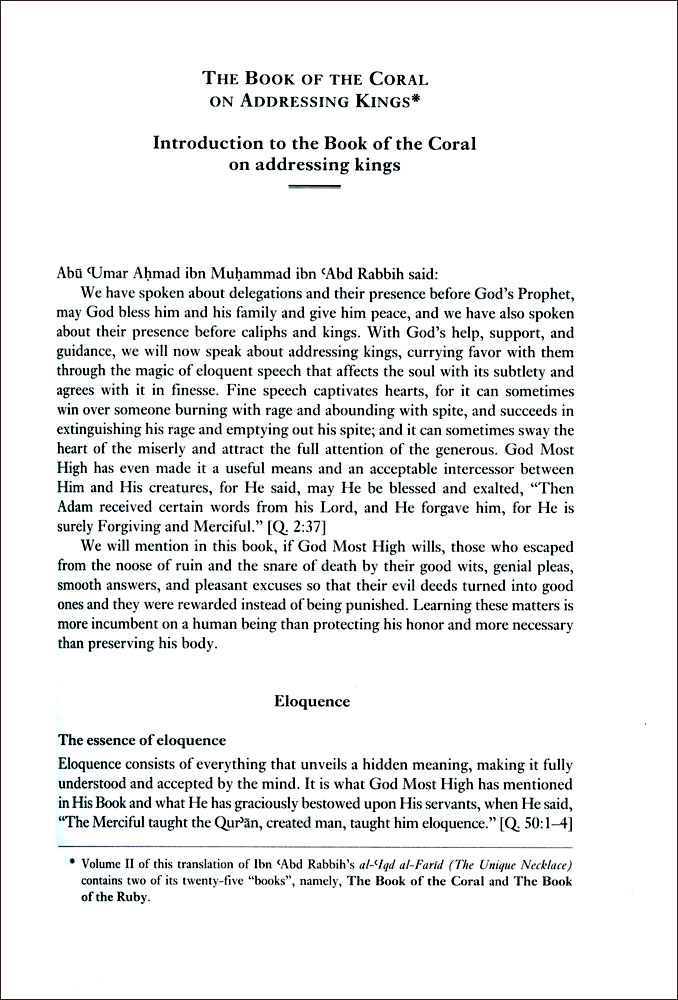 Author: Ibn Abd Rabbih Translator: Issa J. Boullata Publisher: Garnet Publishing Ltd. Size/Vol.: A5_EXTRA (17.3x23.5 cm - 6.81x9.25 in) ISBN : 9781859642269 Language : English -Binding: Paperback -
