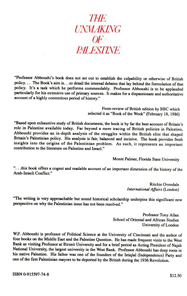 The Unmaking Of Palestine |