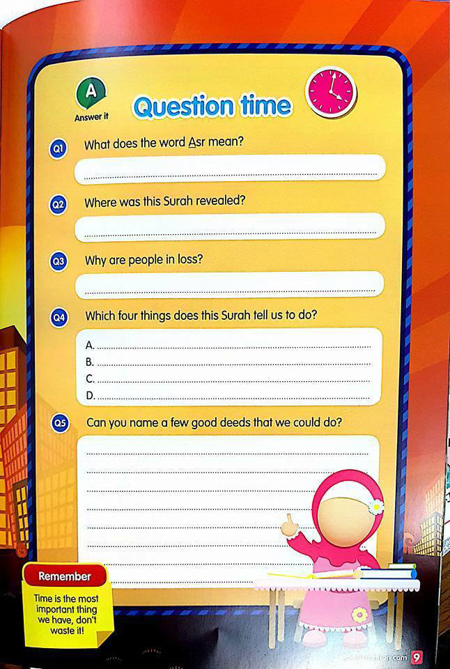 This book is aimed at 9 year old to adults. Every Surah has a few pages to it.