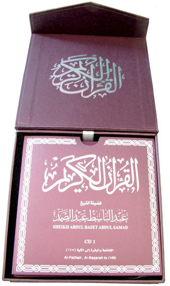 Reciter: Qari Abdul Baset Abdul Samad Producer: Sundus Size/Vol.: CD Box Language : Arabic -Beautiful Recitation of Al Quran Al Kareem on 27 CD's by Qari Abdul Baset Abdul Samad. Comes in a nice gift box set.