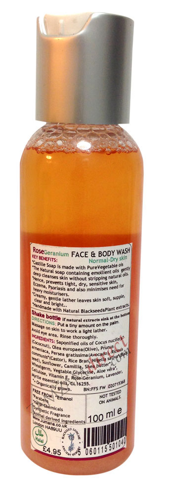 Saponified oils of cocus nucifera (coconut), Olea europaea (Olive), Prunus armeniaca, Persea gratissima (Avocado), Ricinus communis (Castor), Rice Bran, Nigella Sativa (Black seed), sunflower, camillia, Shea Butter, Wheatgerm, Vegtable Glycerine, Aloe vera, cellulose, Vitamin E, Rose Geranium Lavender, myrtle essential oils
