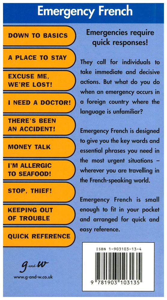 Reach out for Emergency French if you have lost your passport, feel sick, had a mishap, need a mechanic, etc!